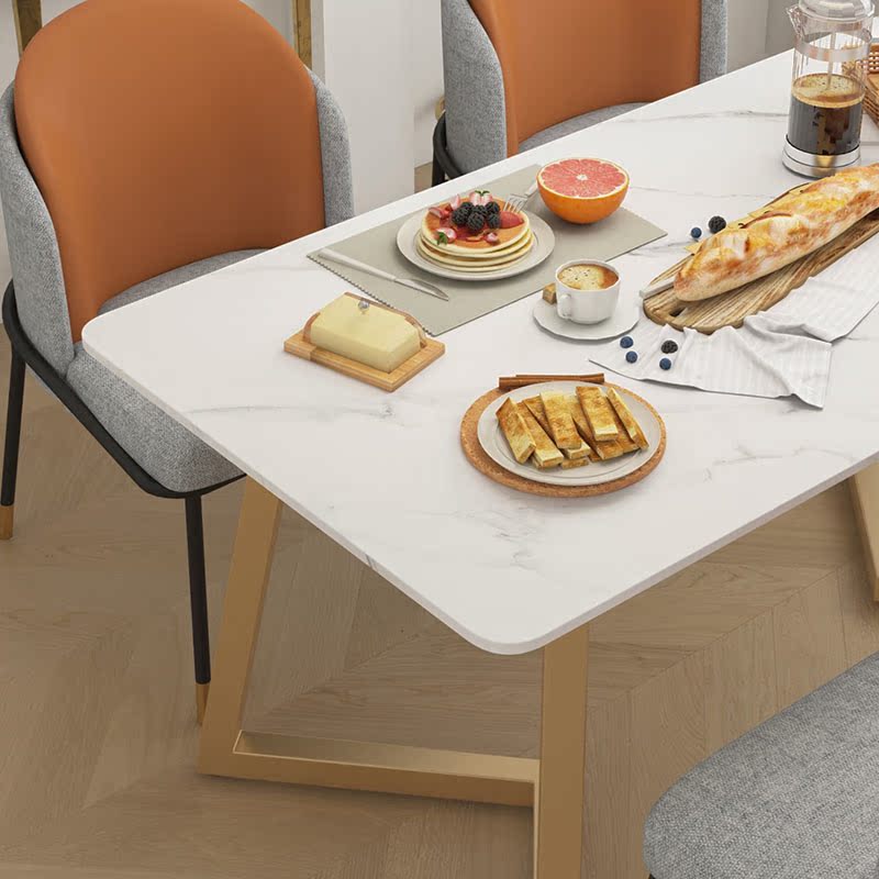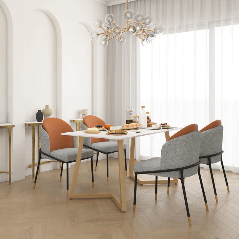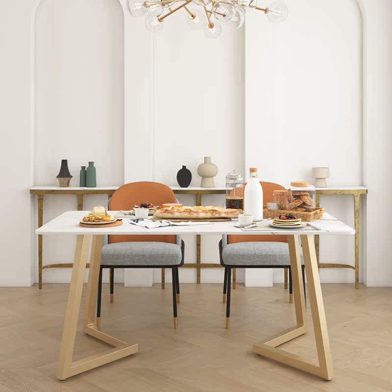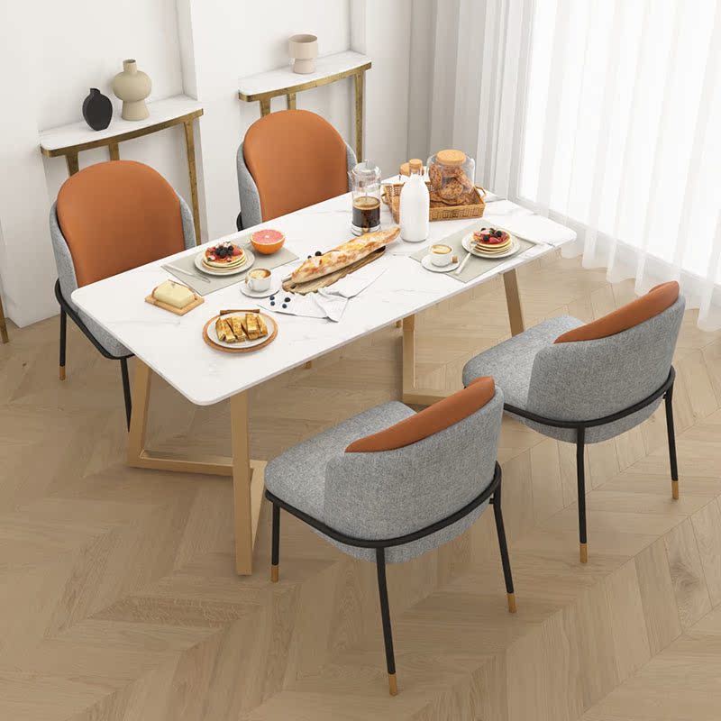 Nordic modern luxury household small apartment marble dining table Rock board dining table and chair combination Italian style simple 4 people 6 people