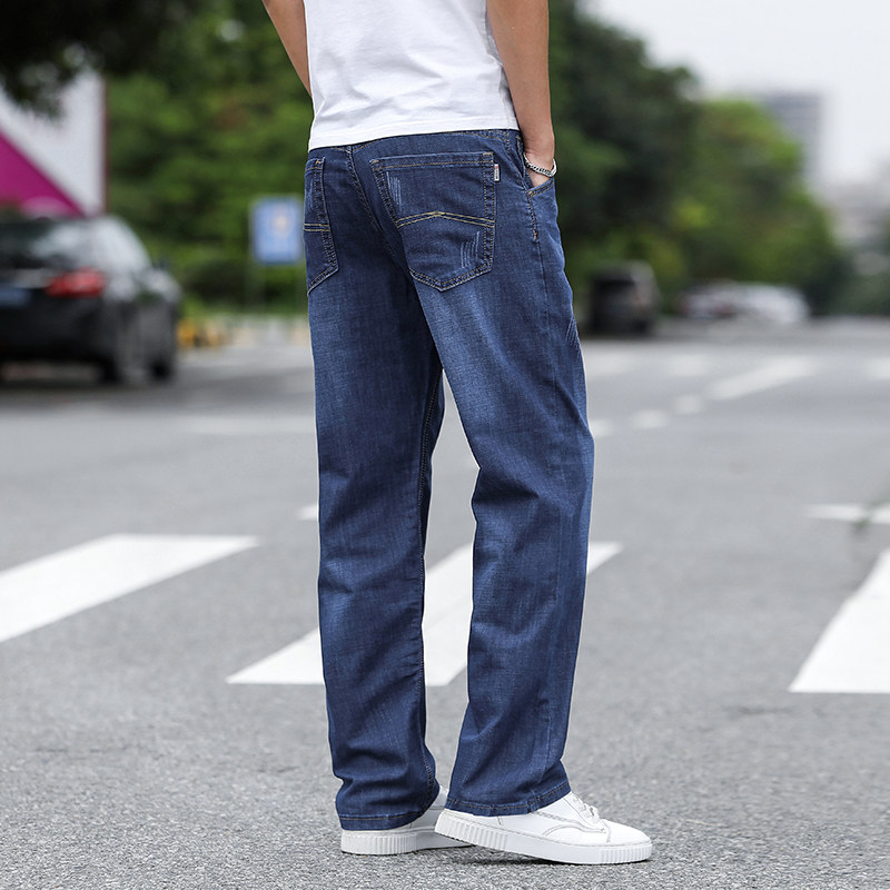 Thin loose trousers men's 2023 new style big trousers simple dark high elastic straight tube large size jeans men