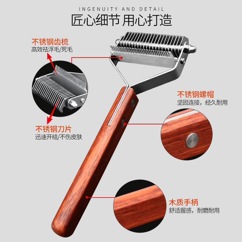 20 teeth solid wood open and deconcomb (single-sided)-(cat dog universal) 20 teeth solid wood open knot removing hair comb (double sided)-(cat dog universal) wooden handle nail clippings (military knife craft) (cat dog versatile)