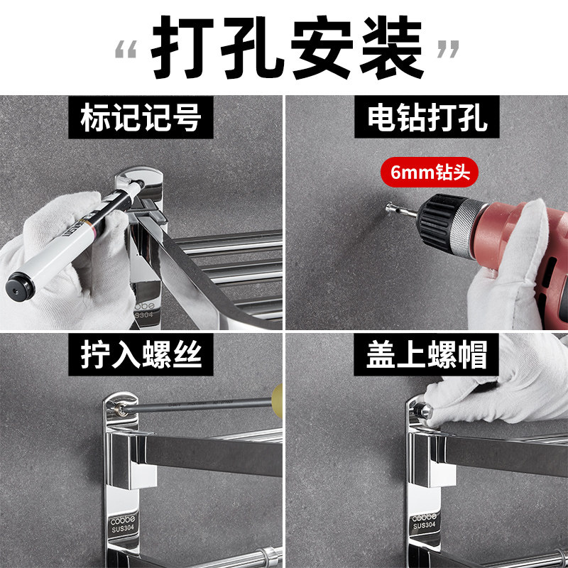Cabe towel rack stainless steel 304 perforated toilet bathroom shelf bath towel rack wall hanging bathroom pendant