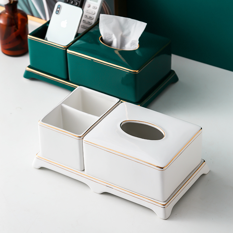 Green ceramic multifunctional tissue box-simple white ceramic multifunctional tissue box-simple green small tissue box-simple white small tissue box-simple green ceramic living room 3