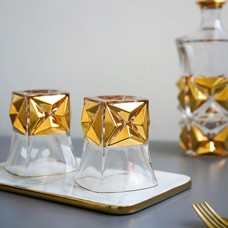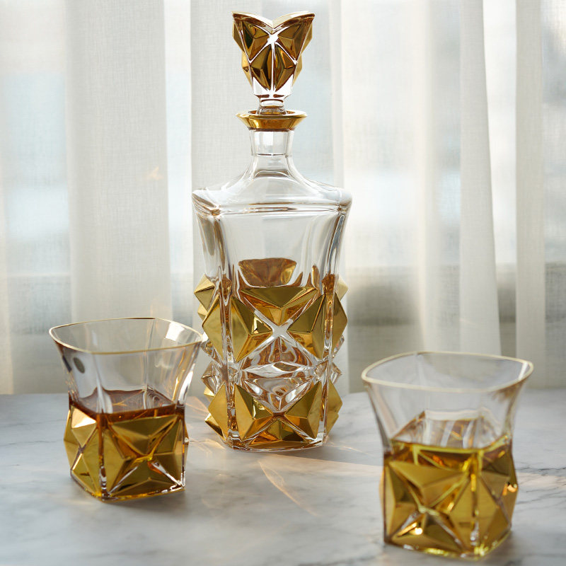 BOHEMIA Czech original Imported Pyramid by hand sketch Wine Bottles Whisky Cup Upscale Lavish Retro