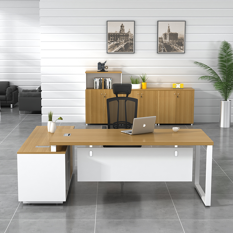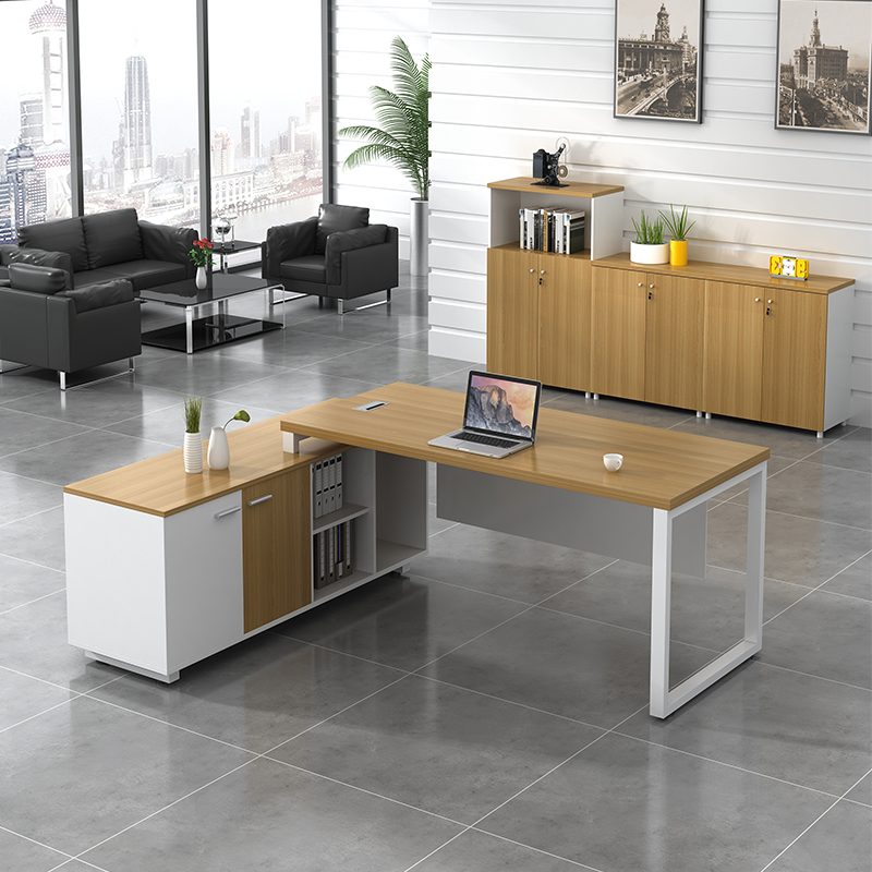 Shanghai office desk Boss table Modern simple executive table and chair combination Single manager president with side cabinet Large desk