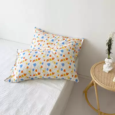 Korea ins Tulip Blue fresh single pillowcase cotton dormitory single pillow cover without pillow core can be customized
