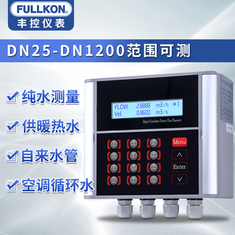 Portable Handheld Ultrasonic Flow Meter Wall-mounted Pipe Flow Meter Liquid Water Outer Clamp Cold Heat Sensor