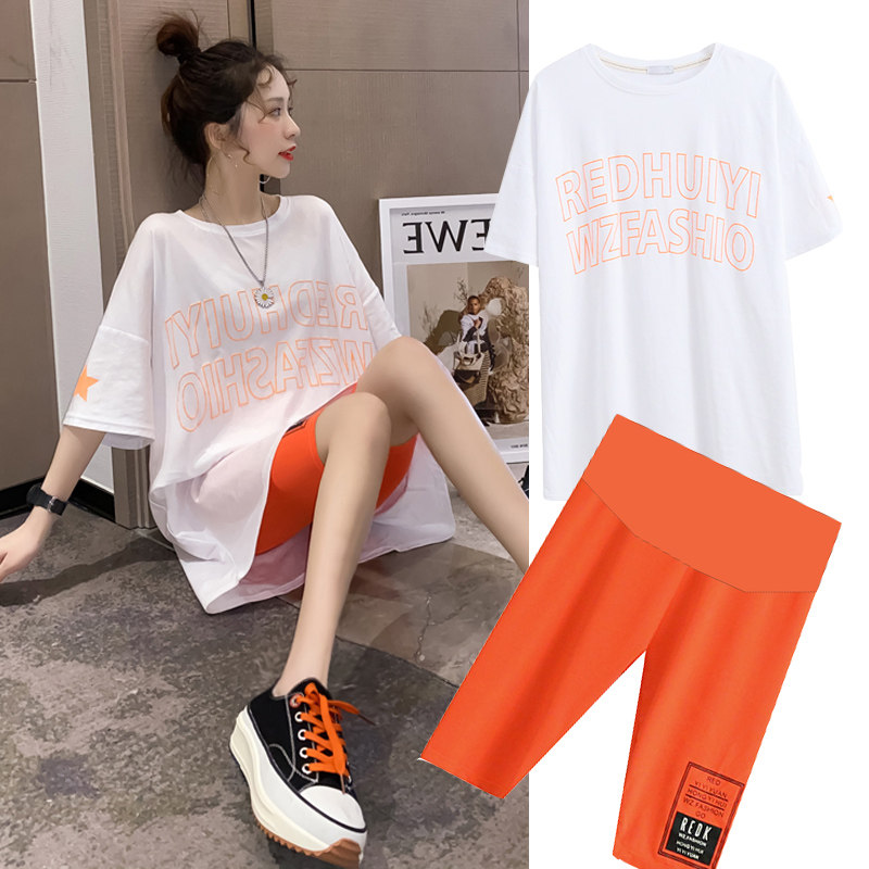 Pregnancy maternity dress Xia suit out of fashion Tidal Moms 2020 Summer Nets Red Little Fragrance shorts Two sets for summer