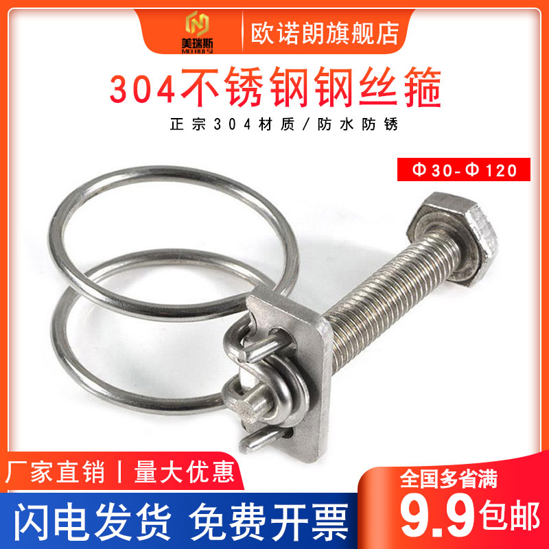 304 stainless steel wire hoop powerful rubber pipe hoop water pipe fire hydrant holding pipe hoop double steel wire throat hoop
