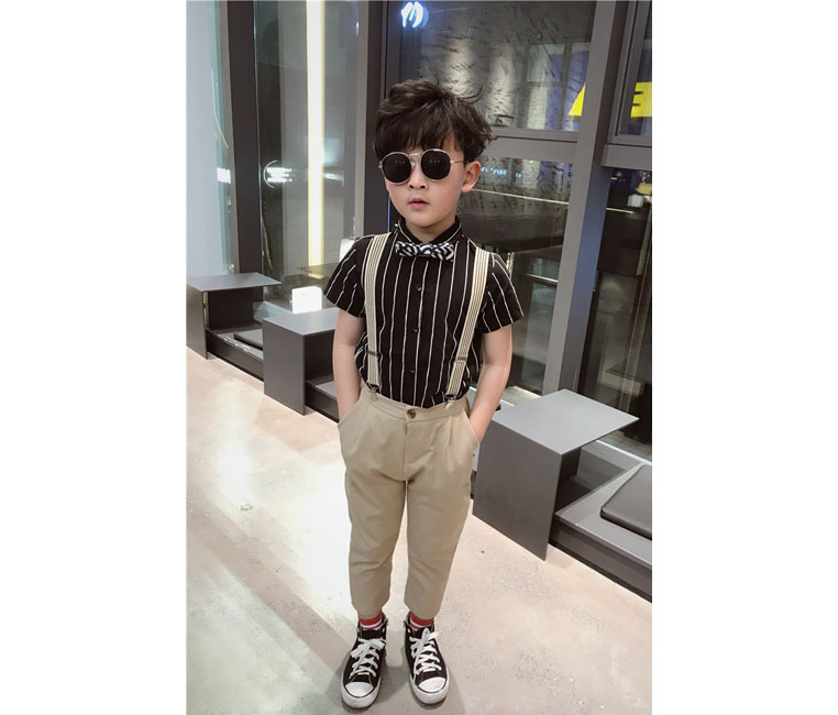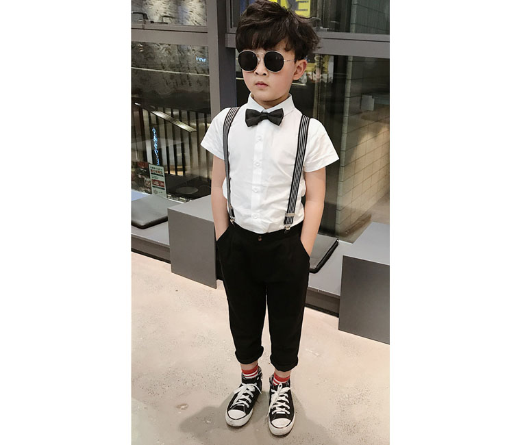 White short sleeve shirt (delivered collar tie) black striped short sleeve shirt (delivered collar tie) white short sleeve shirt suit (short sleeve long pants black striped short sleeve suit (short sleeve long pants white short sleeve four pieces sleeve (