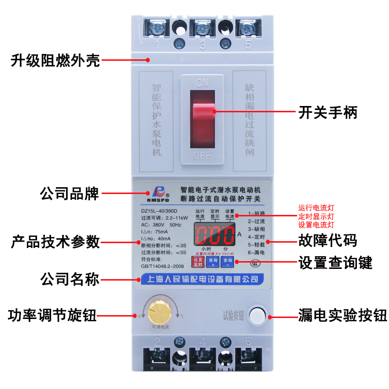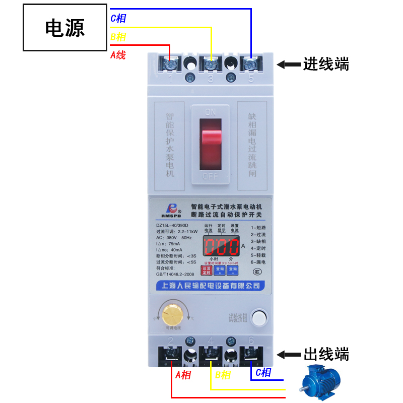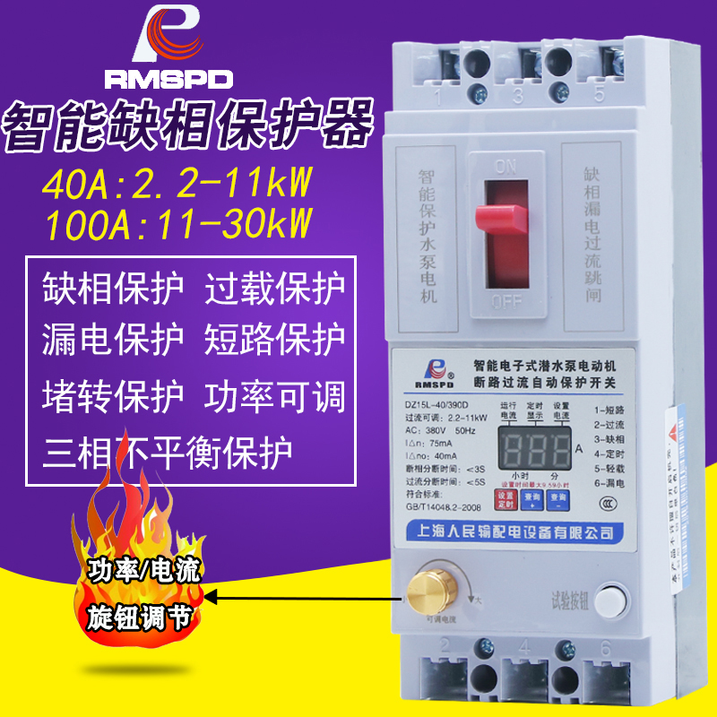 Shanghai people's lack of phase protector digital display intelligent comprehensive protection switch 380V earth leakage circuit breaker water pump motor
