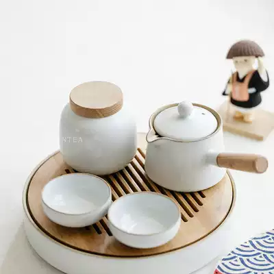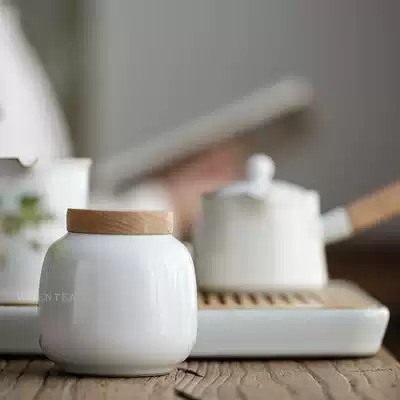 Wen said) Japanese-style Yue White small tea cans simple ceramic household tea set Tea storage tank tea tank waking tea tank tea warehouse