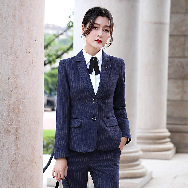 Yuanshenglai autumn and winter long-sleeved suit female professional suit striped tooling commuter customer service foreman female manager overalls