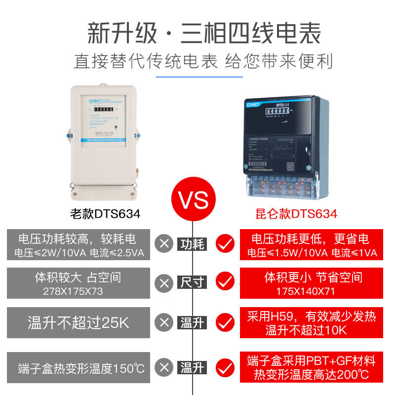 Chint Meter 380V Kunlun DTS634 Three-Phase Four-Wire Watt-hour Meter High Power Transformer Electronic Energy Meter