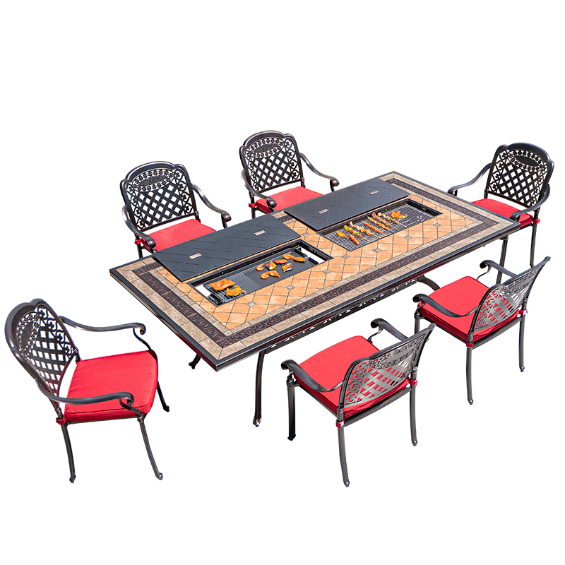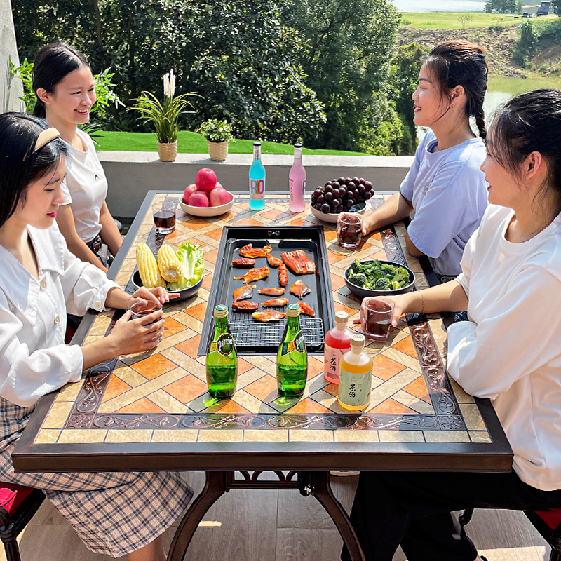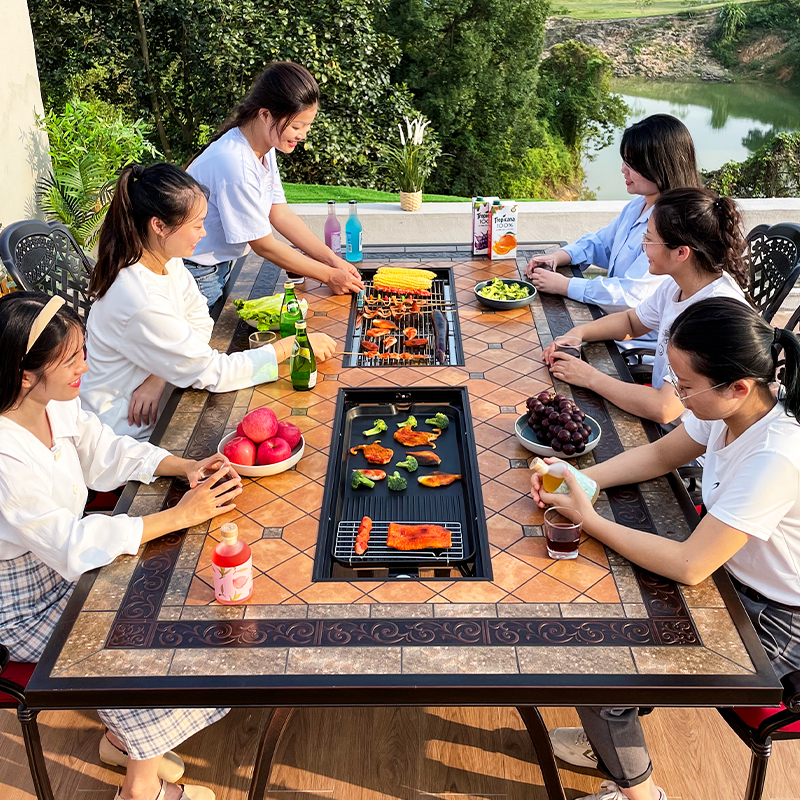 Outdoor cast aluminum barbecue dining table courtyard terrace garden villa wrought iron outdoor leisure home outdoor outdoor electric grilling table and chairs