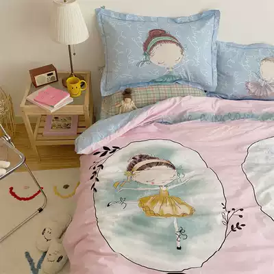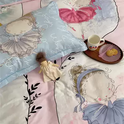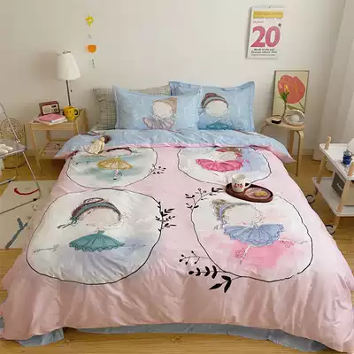 (Toyama Strawberry) cotton cartoon quilt cover four-piece cotton ballet girl princess style bedding
