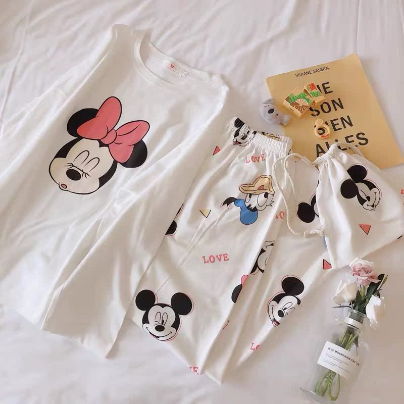 Cloth Bag Sleeping Yi Women Spring Autumn Pure Cotton Thin length sleeves Cartoon sweet and beautiful Minnie loose can be externally worn with two style suits