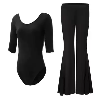 Two-piece black short-sleeved top Micro-flared pants Two-piece black mid-sleeve top Micro-flared pants Two-piece black long-sleeved top Micro-flared pants Two-piece Burgundy short-sleeved top Micro-flared pants Two-piece Black long-sleeved top Micro-flared pants Two-piece black short-sleeved top Micro-flared pants Two-piece
