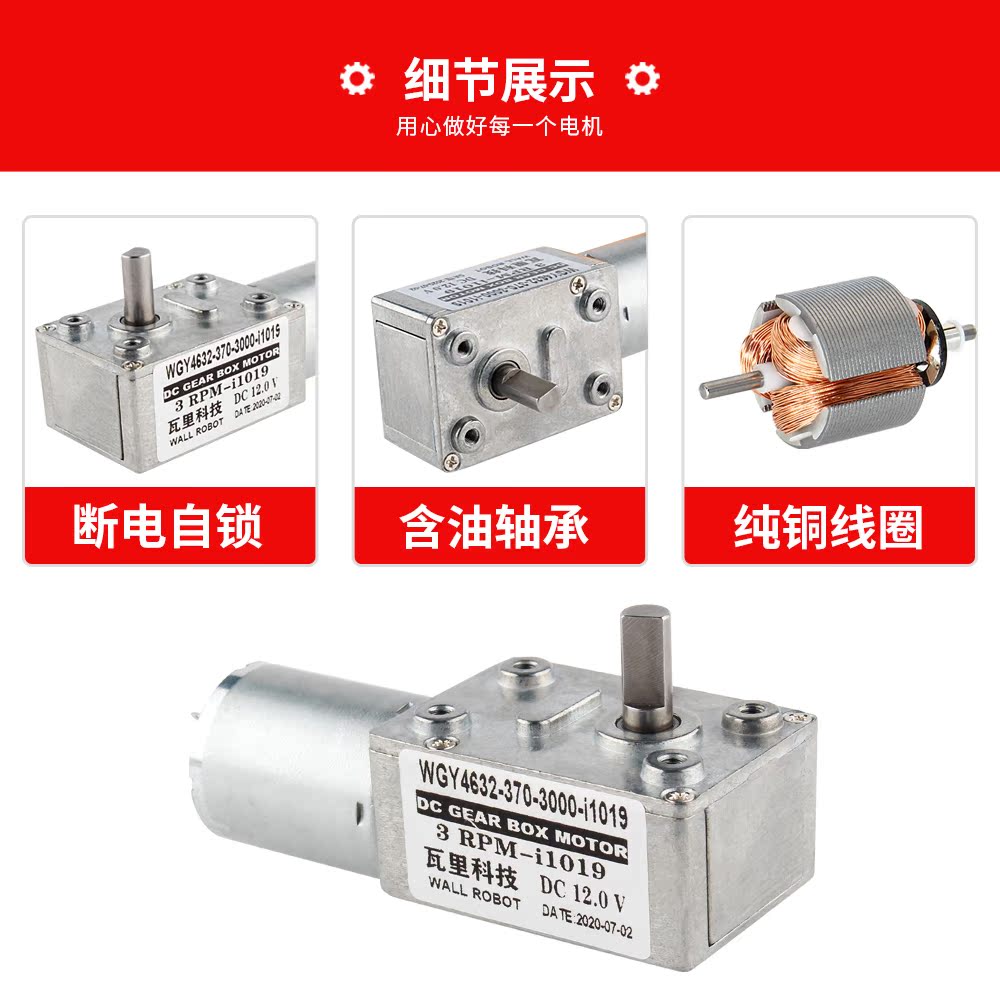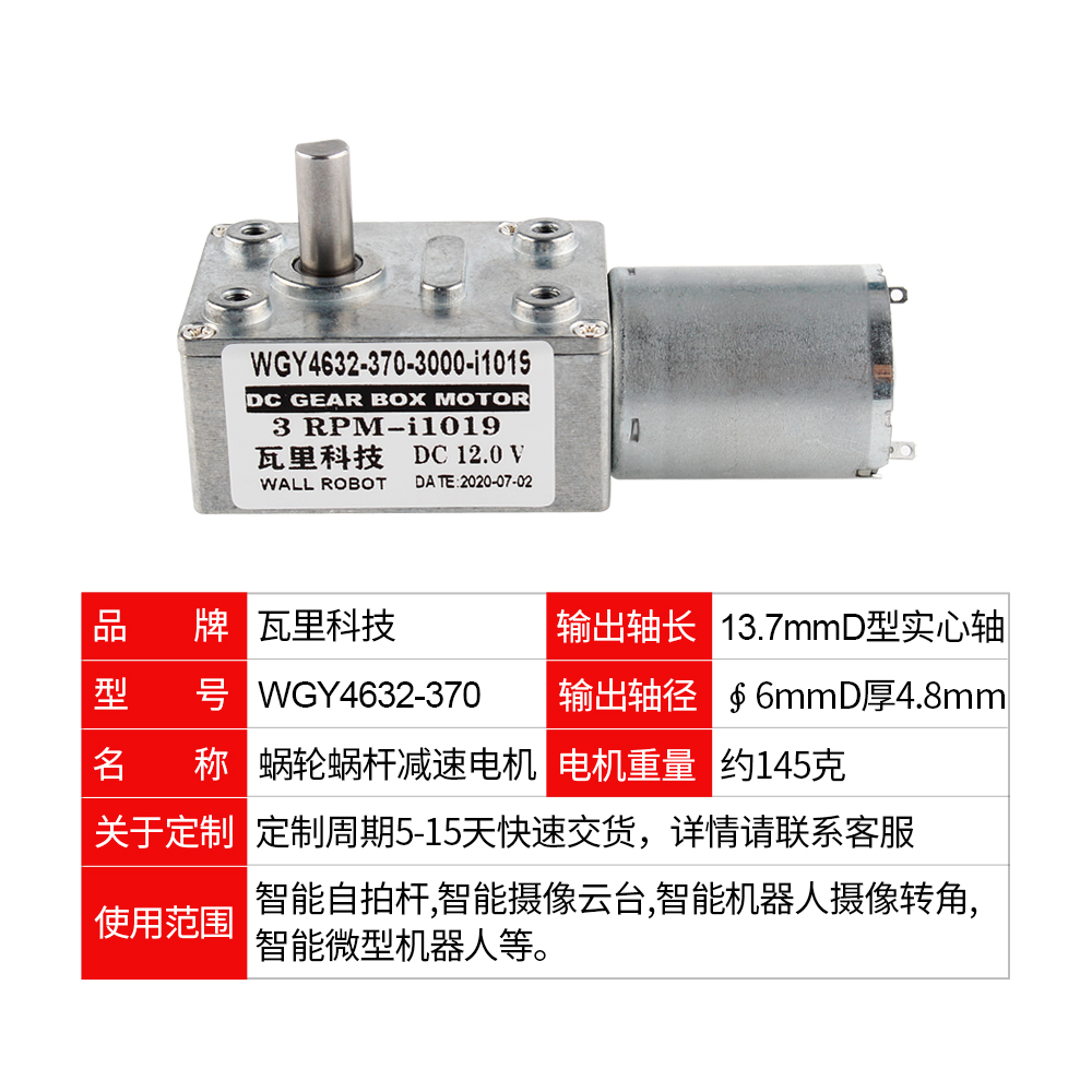 Self-lock motor 4632GY370 turbo-worm-angle Angle Reduction Motor Square Gearbox 6V12V24V