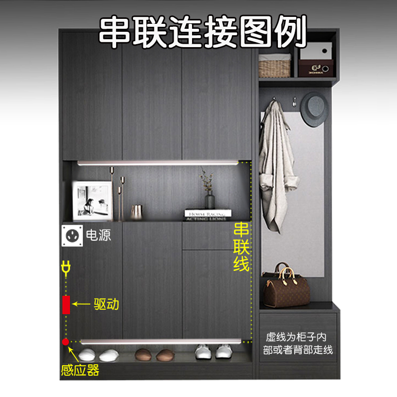 LED intelligent human body induction light Shoe cabinet entryway light with corridor wardrobe wine cabinet light bar dark area fill light customization