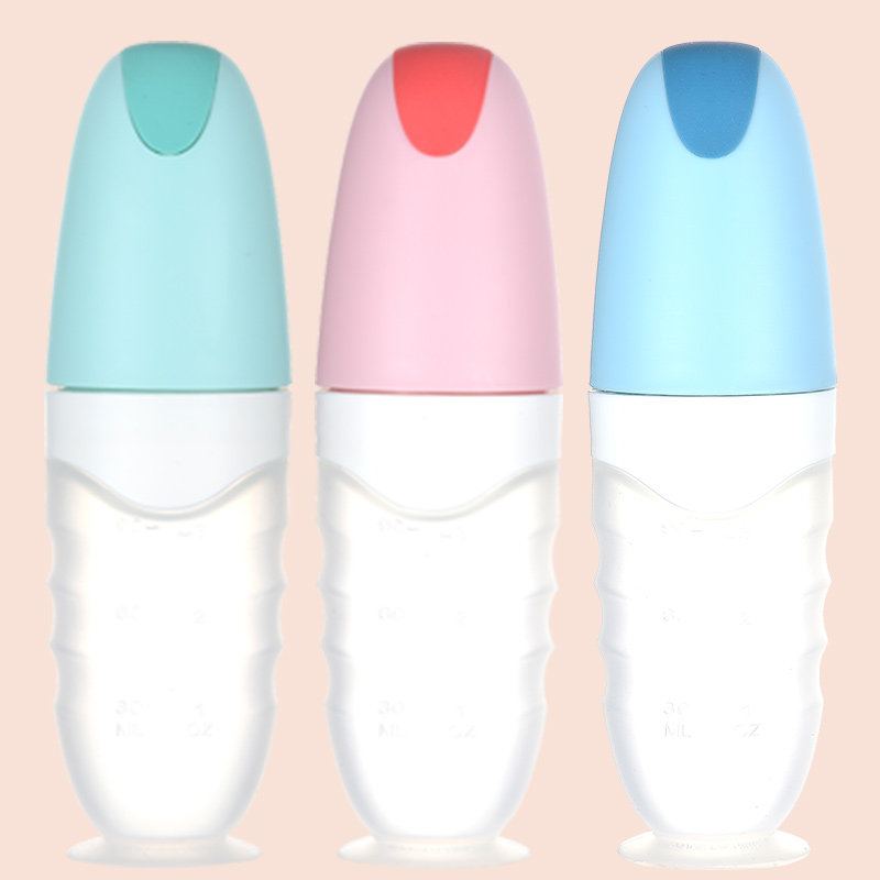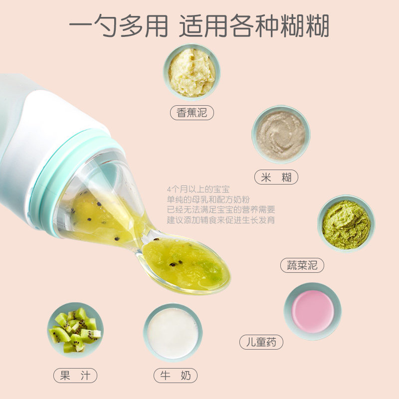 Baby Rice Burnt Silicone Milk Bottle Baby Deputy Food Theorizer Squeeze Type Soft Fork Spoon Feeding Tool Toddler Rice Flour Cutlery