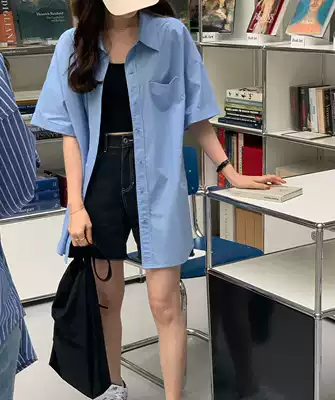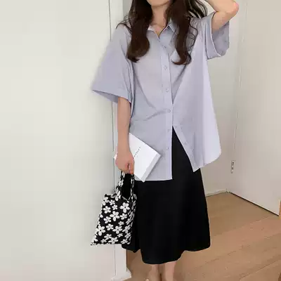 (JUSLIN)Loose profile split design Pocket quality combed cotton wild short-sleeved shirt F0720