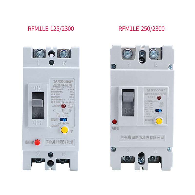 2P high-power single-phase leakage protector 100A125A250A adjustable two-phase plastic case leakage circuit breaker with light
