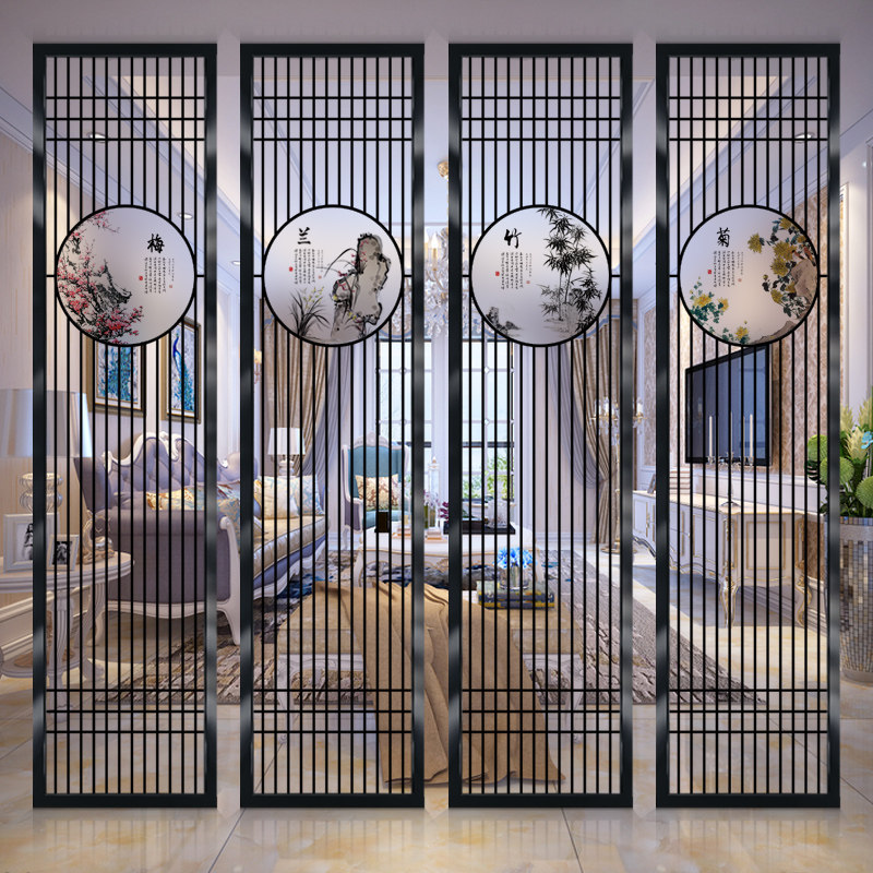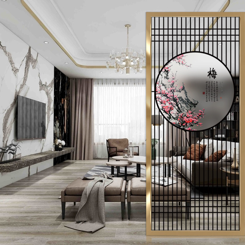 Modern new Chinese art glass screen custom minimalist living-room decoration partition Xuanguan Background wall frosted light transmission