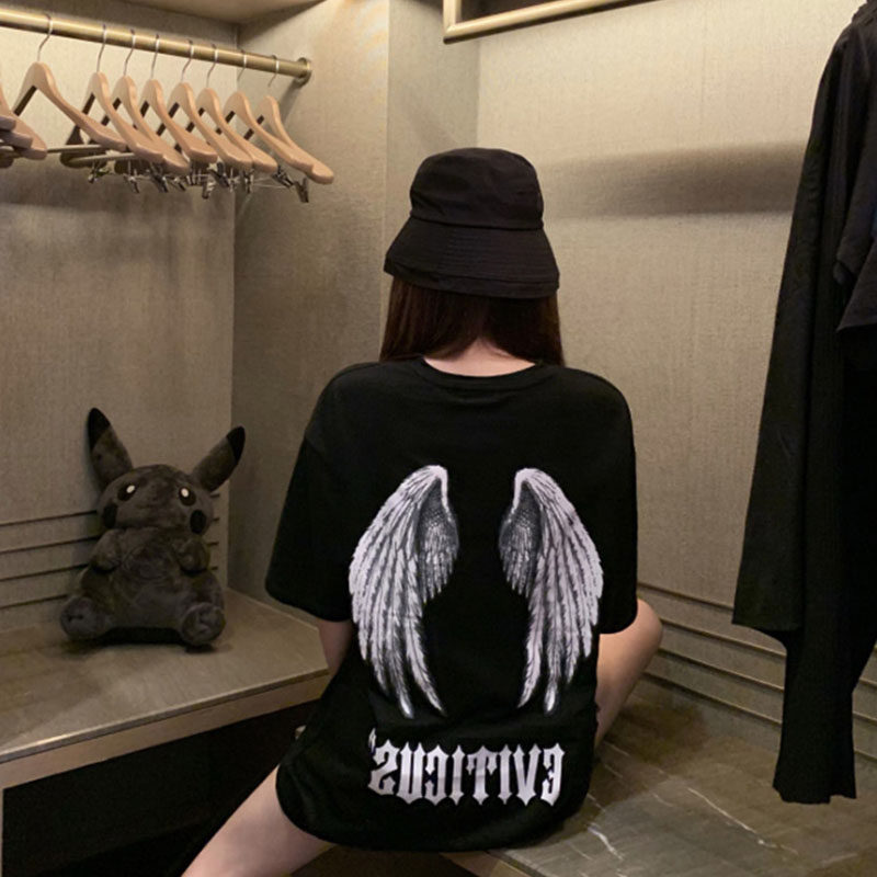 European Station Women's Clothing Summer Short Sleeves Ins Tide Wings Print Blouse 2020 New Korean version Loose Undercoat Missing