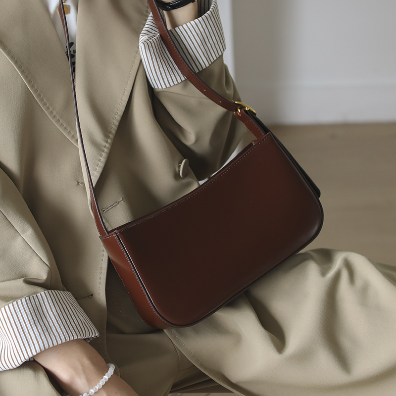 2022 new simple retro armpit bag leather shoulder women's bag niche all-match baguette middle-aged handbag