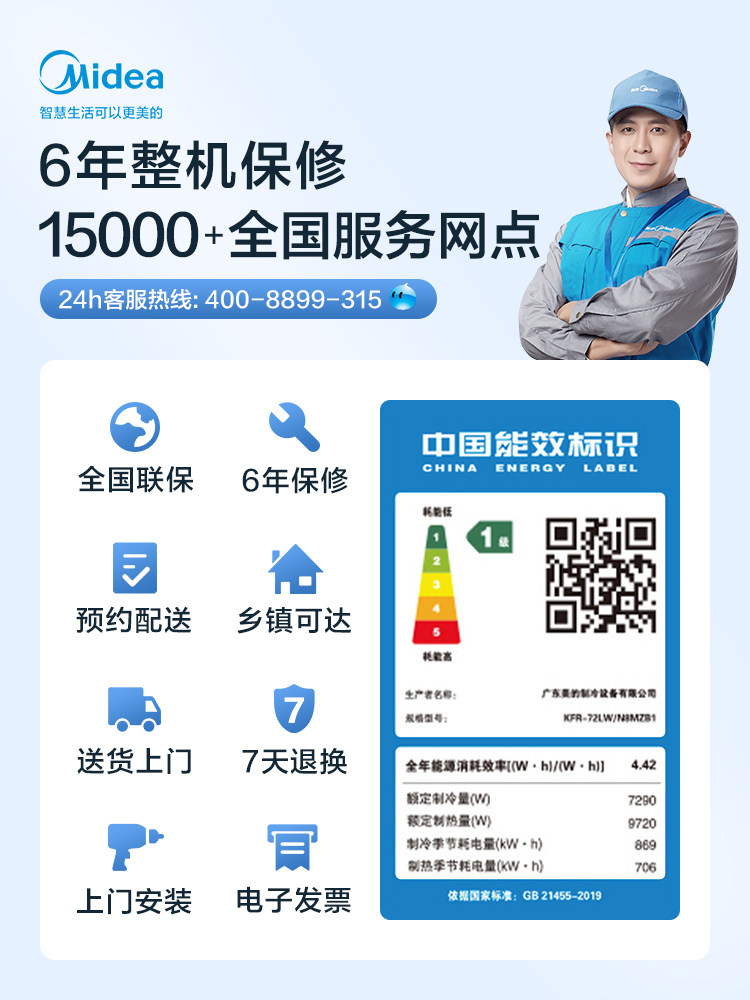 Midea Fengzun large 3 horses first-level frequency conversion heating and cooling home living room cylindrical vertical cabinet machine KFR-72LW N8MZB1