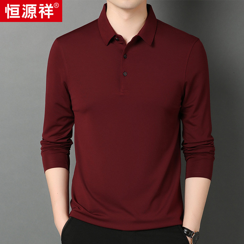 Hengyuan Xiang's new men polo shirt with long sleeves flip collar mulberry silk T-shirt autumn clothing blouses in pure color middle-aged pundits