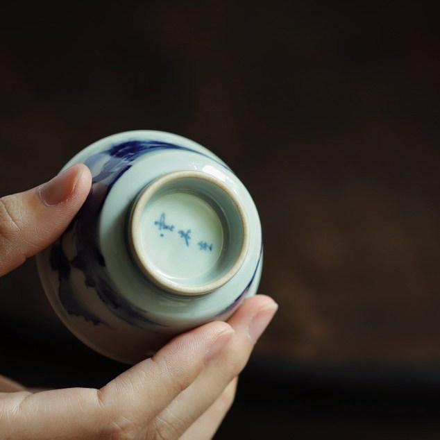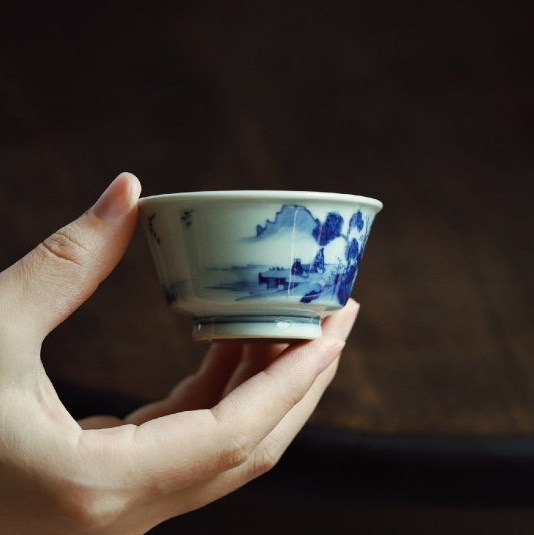(idle and fast alive) Yunmu is in the Qinghua Kangxi landscape master's cup tasting cup