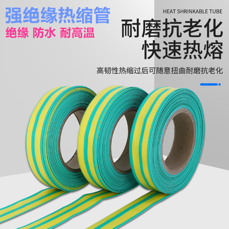 Low-voltage yellow-green double color thermal shrinkage tube low temperature electrical insulation sleeve connecting ground harness pipeline environmental protection non-character shrinkage pipe