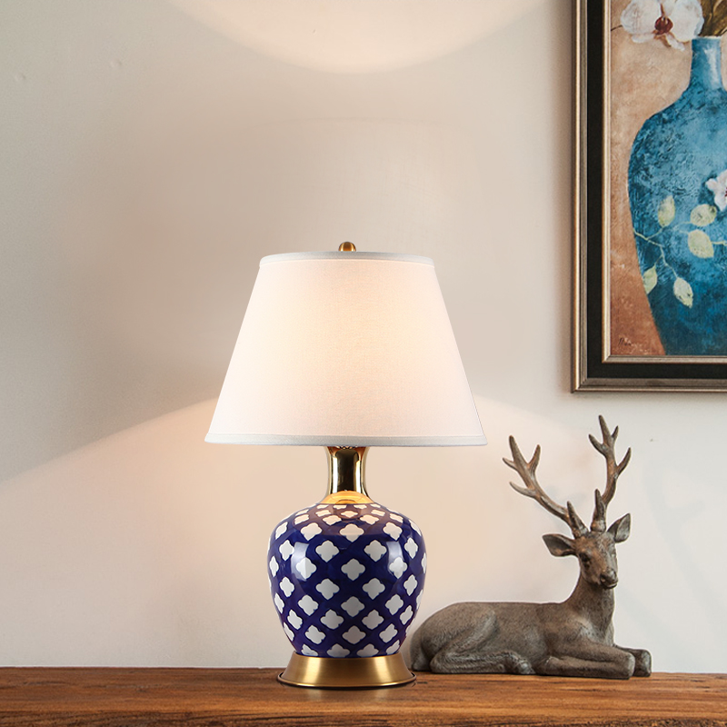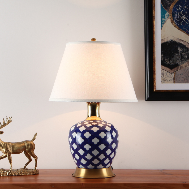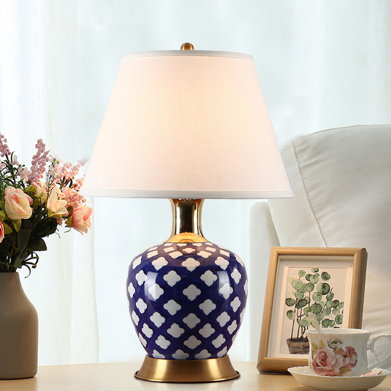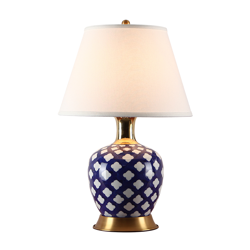Jingtao Xijiao Simple American Light Luxury Living Room Blue Flower All-copper ceramic table decorated modern Chinese bed head lamps