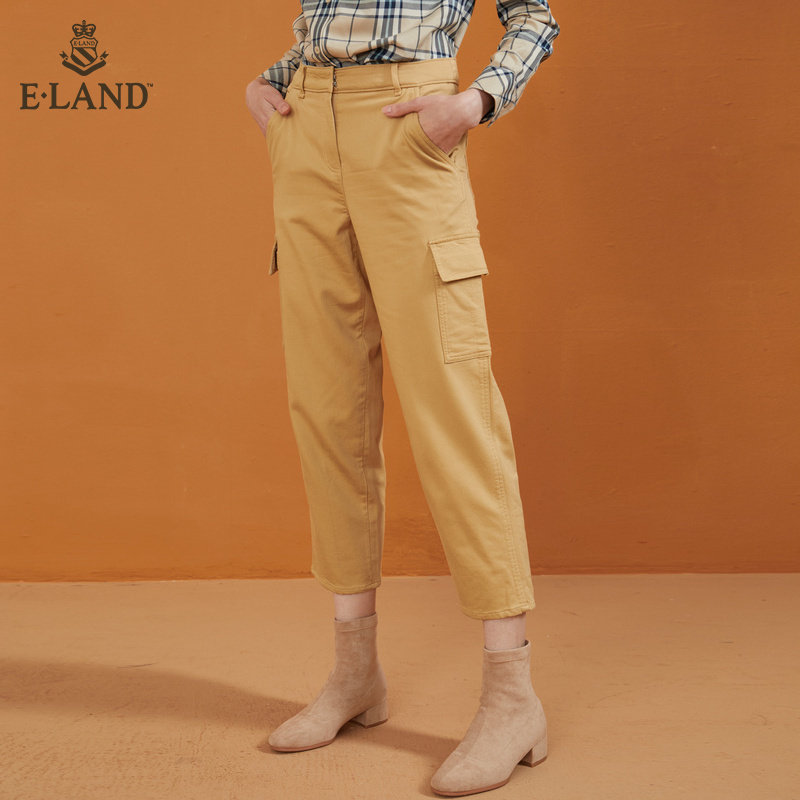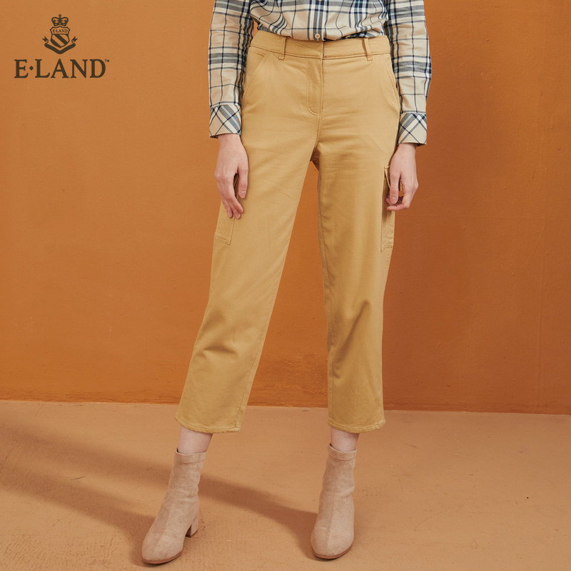 ELANND clothing romance spring summer pure color large pocket work dress pants female display slim 100 lap loose straight drum casual pants attachment