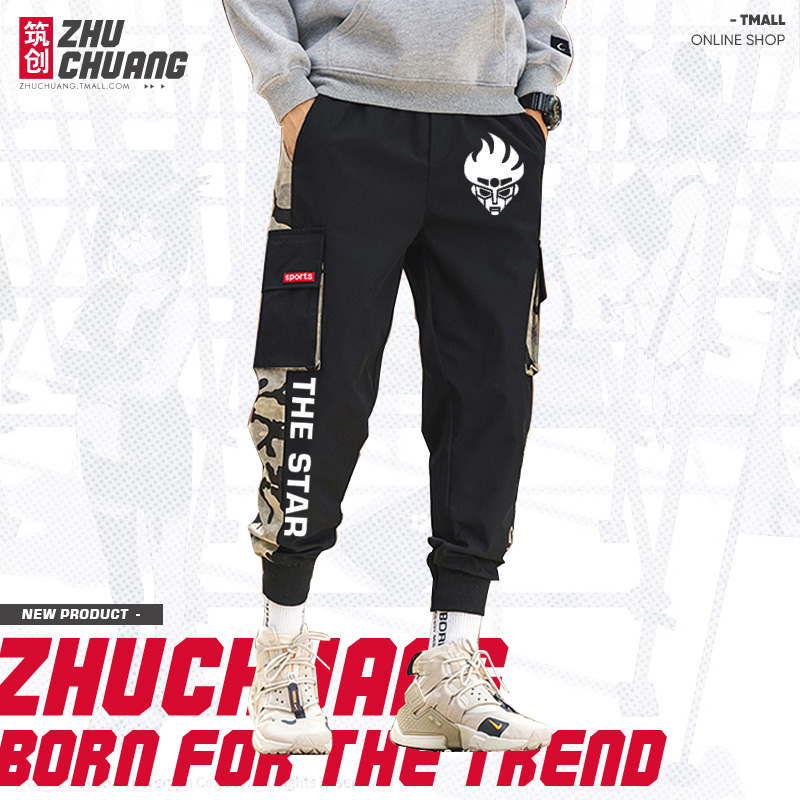 JOJO's fantastic adventure Killer Queen anime is surrounded by printed men's and women's casual trousers workwear pants pipe pants