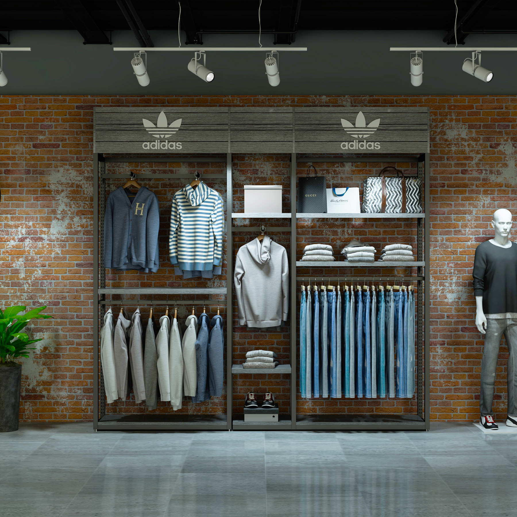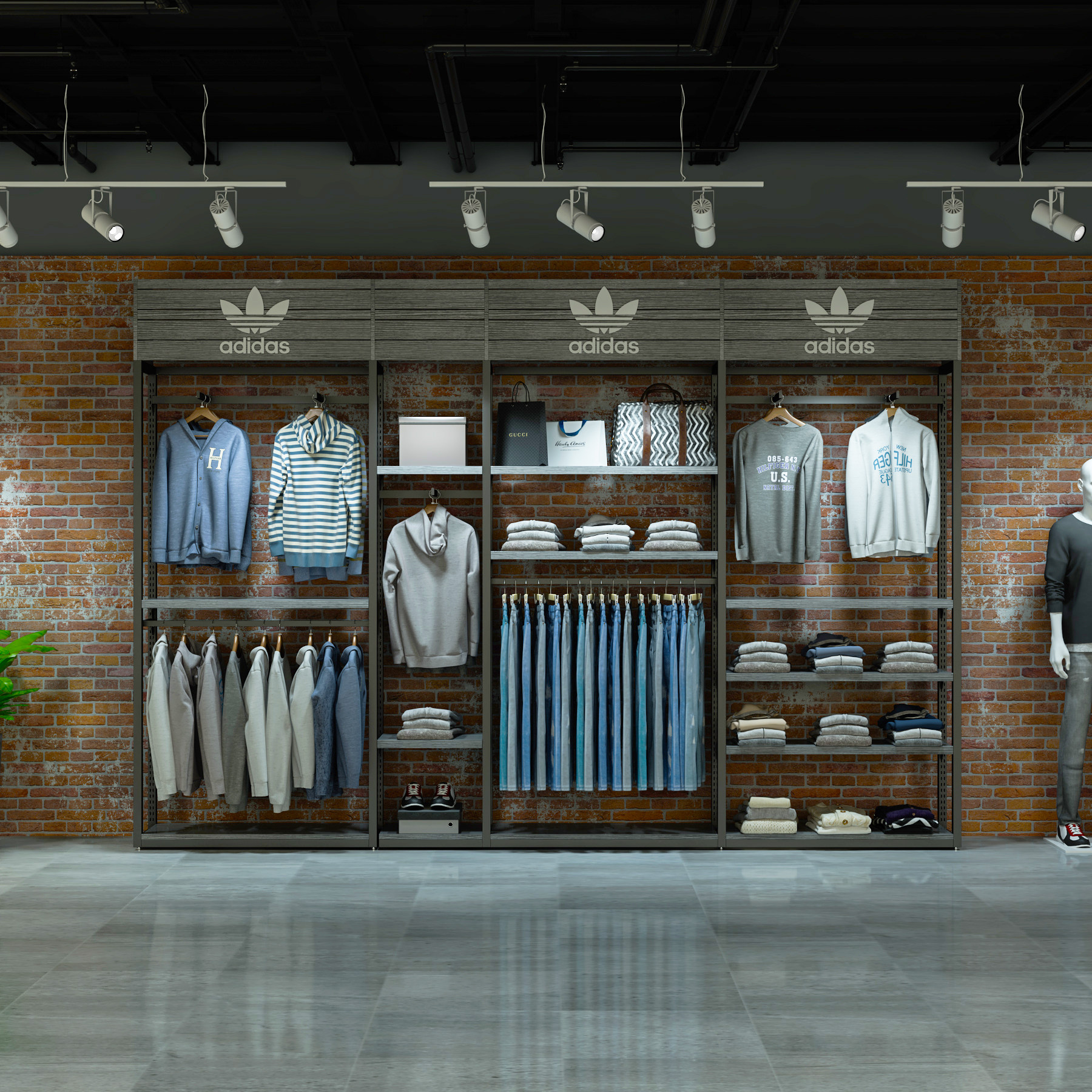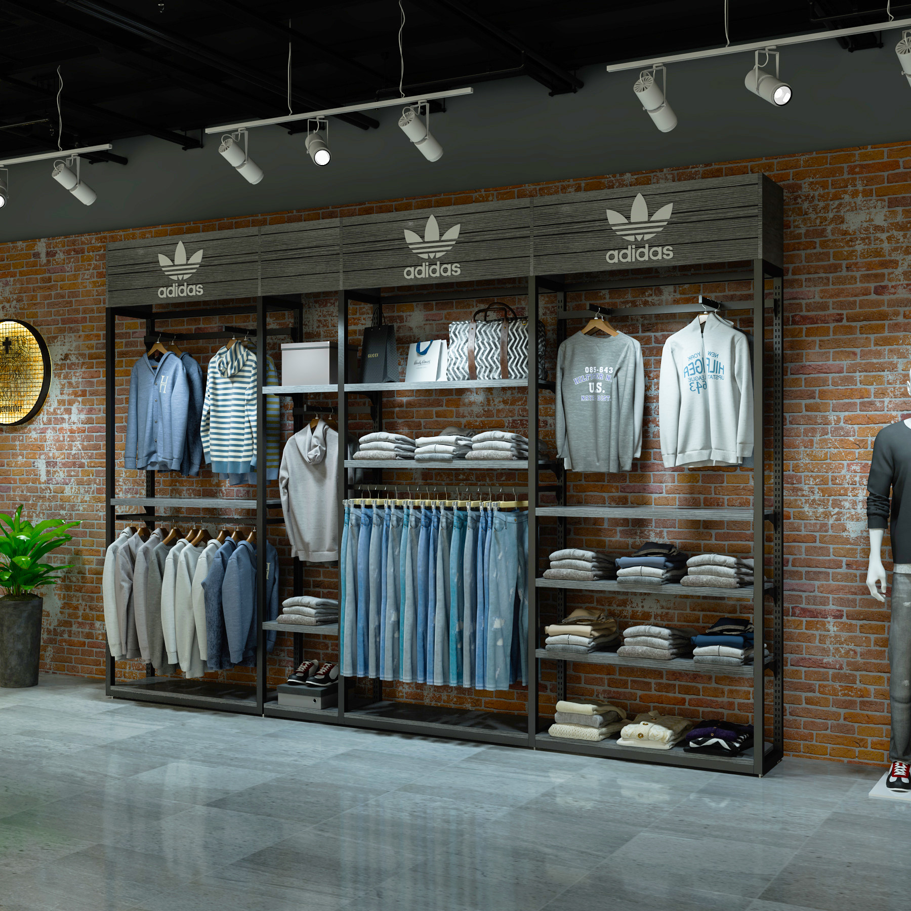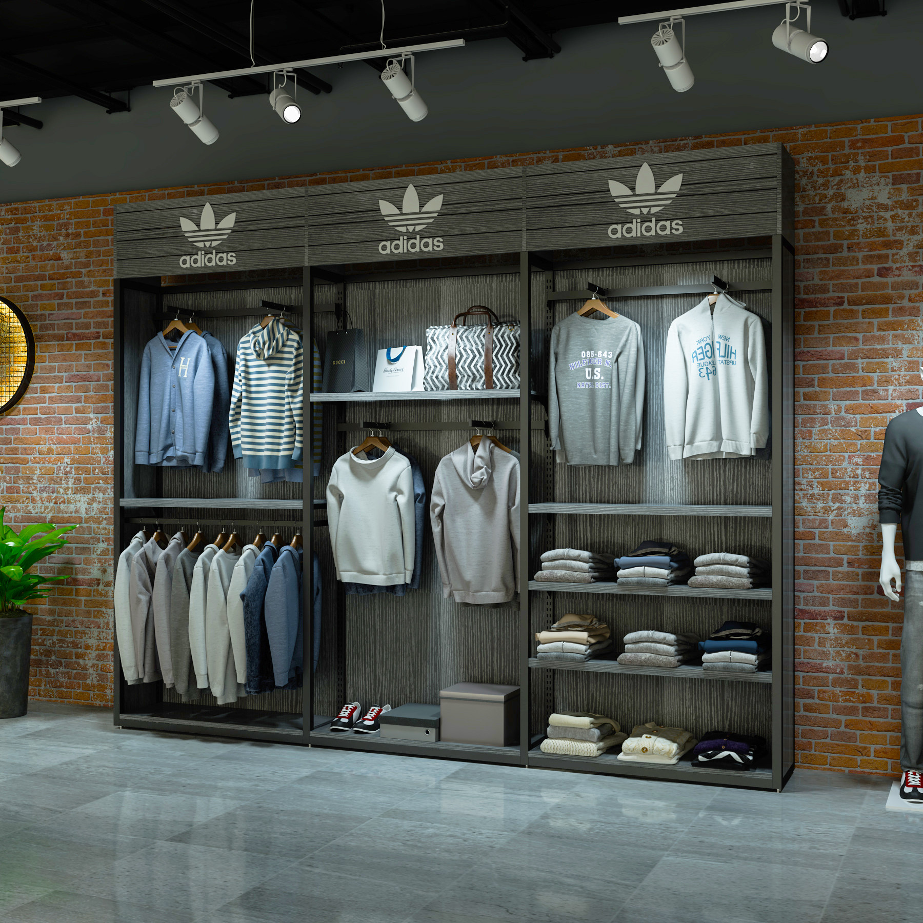 Clothing store display rack floor-to-ceiling outdoor sports Nike shelf men's clothing store display cabinet shelf Adi display rack