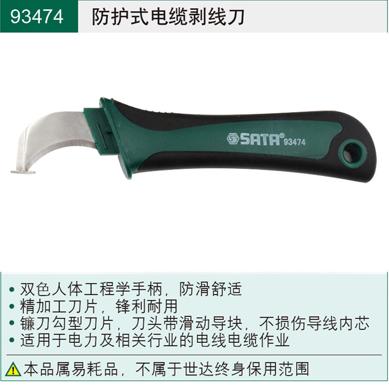 Shida Cable Stripping Knife Five Gold Tool Electrician Knife Straight Blade Bending Blade Protective Type Stripping Knife Skinning Knife 93473