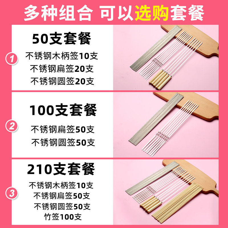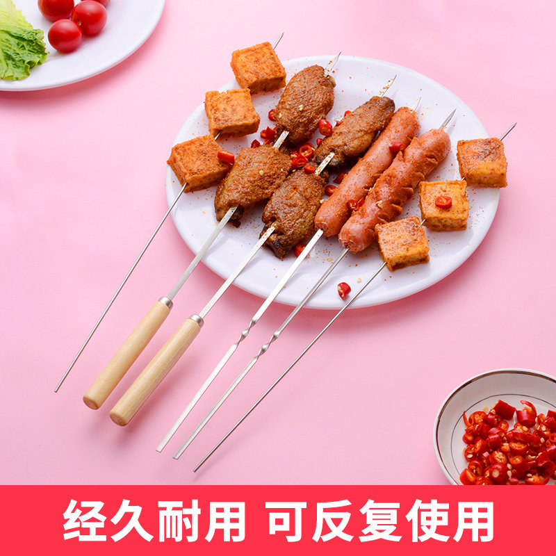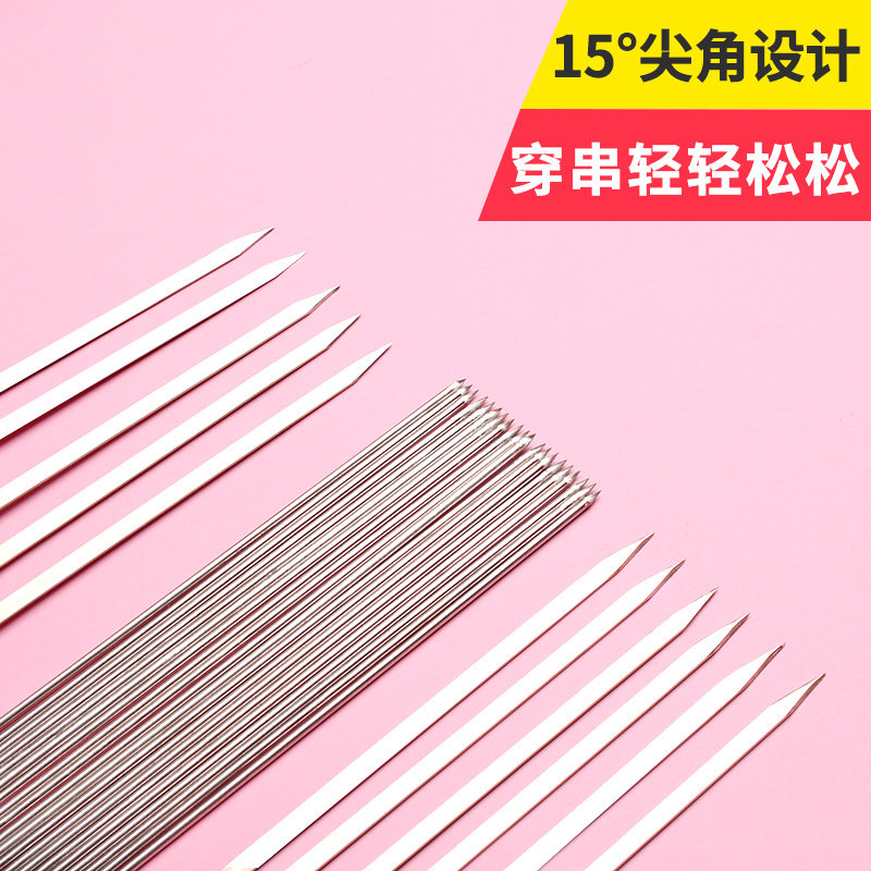 Barbecue Sign stainless steel Barbecue Needle Goat Meat String Iron Signature Plus Coarse Thickening Type Flat Round Roast Sign Baking Strings