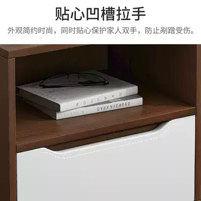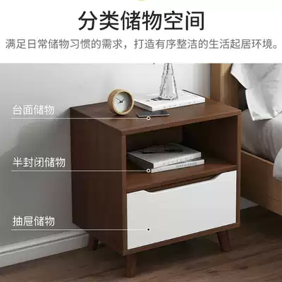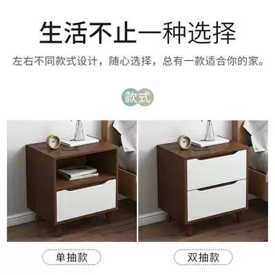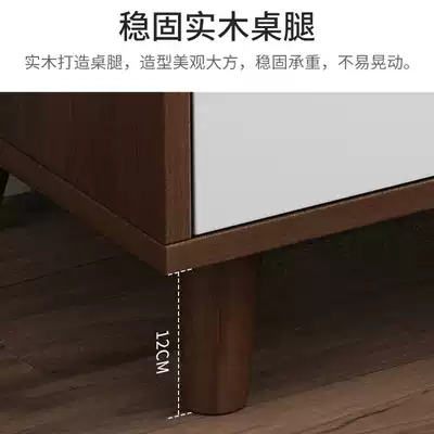 Nordic modern minimalist solid wood leg bedside table double drawer walnut bedroom simple storage cabinet Japanese bedside cabinet