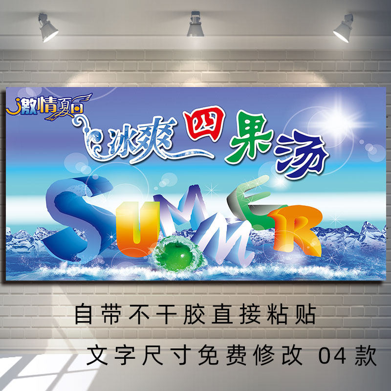 HD custom ice porridge advertising poster PP adhesive sticker shaved ice four fruit soup snack car sticker light box painting KT board