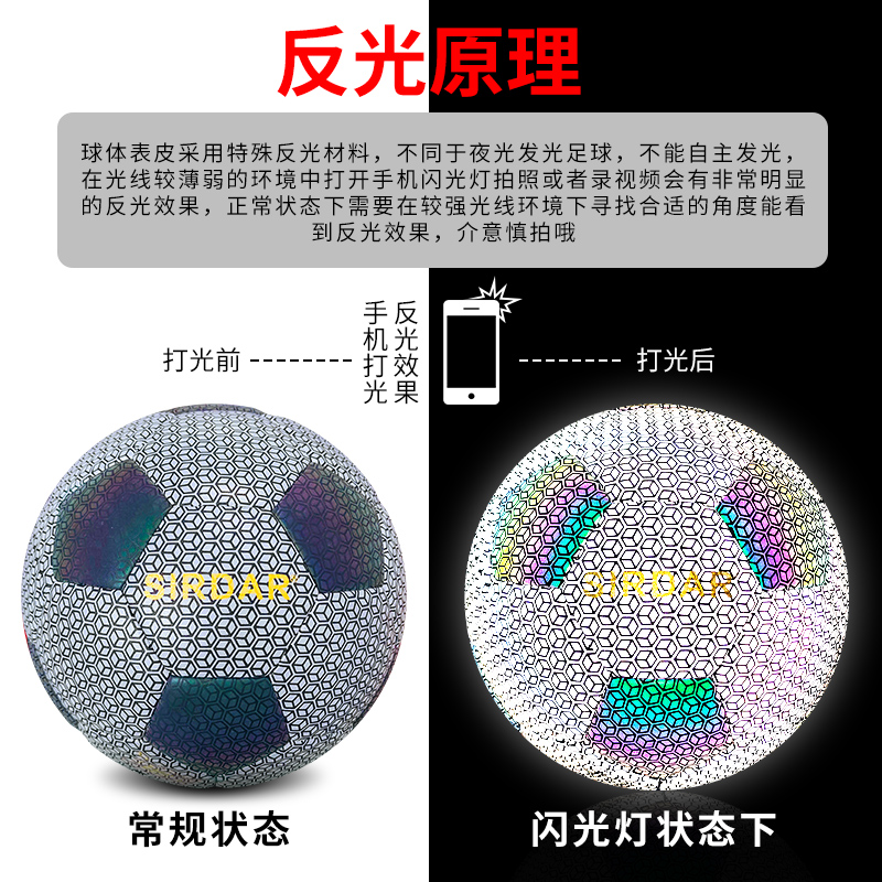 590 Reflective Soccer Ball (Phone Flash Illuminated Reflective) - Rainbow Color - No. 5 Soccer Ball