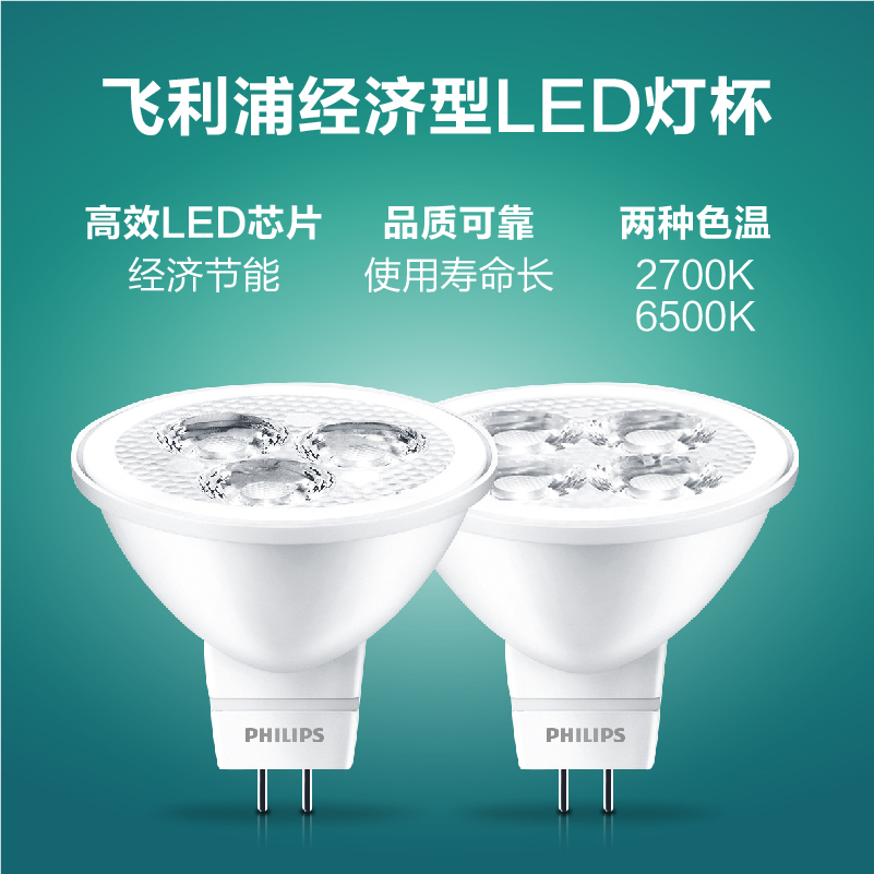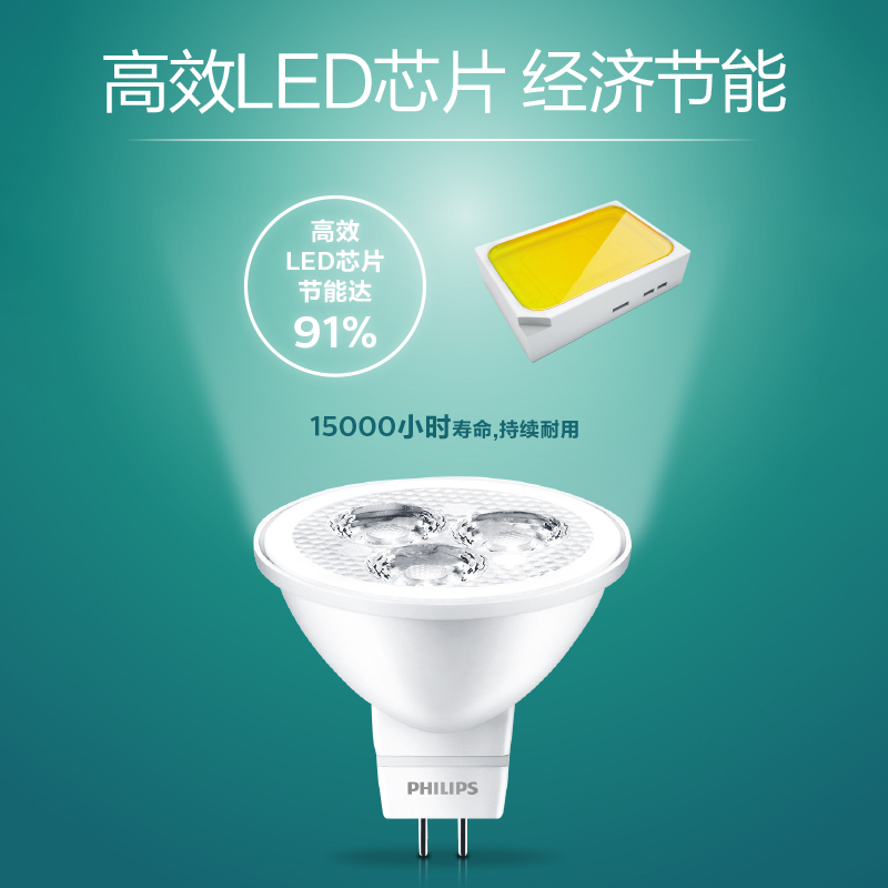 Philips LED lamp cup energy-saving bulb halogen lamp cup replacement GU5 3-pin household downlight spotlight embedded