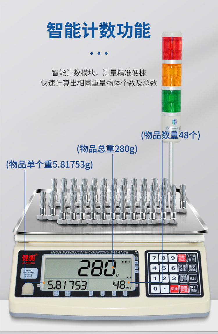 Jianheng industrial belt three-color alarm light electronic scale upper and lower limit warning counter Weight table scale Acousto-optic electronic scale