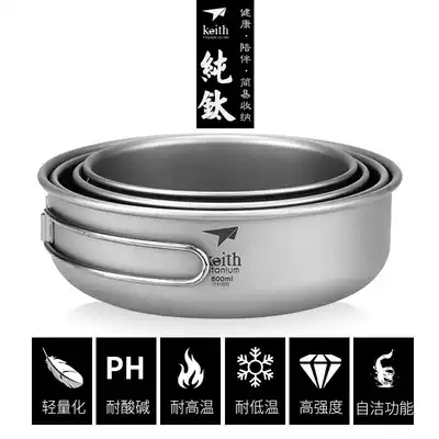 Keith Kaisi folding handle pure titanium bowl Field rice bowl lunch box Outdoor titanium tableware Portable set Picnic supplies