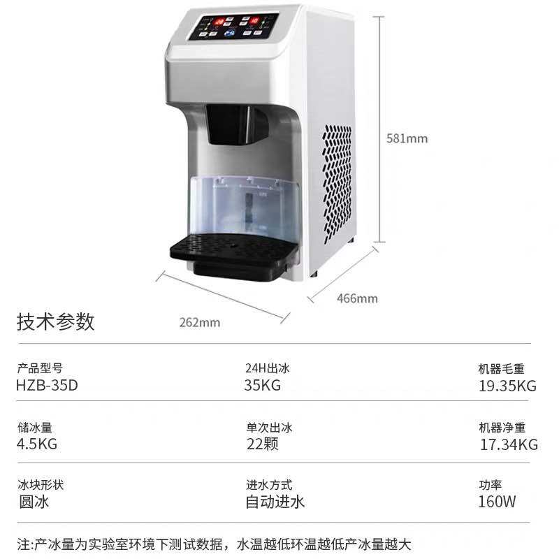 Wellcome ice machine commercial small imported household milk tea shop coffee shop desktop automatic ice 35kg round ice