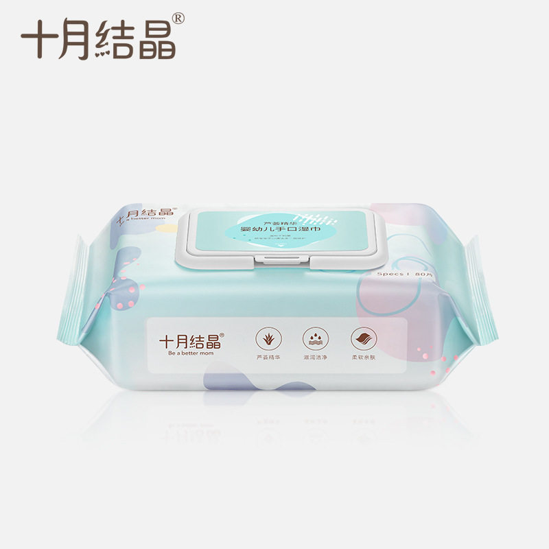 October crystalline baby soft towel handle special baby butt newborn baby large packaging wet tissue 80 pumps
