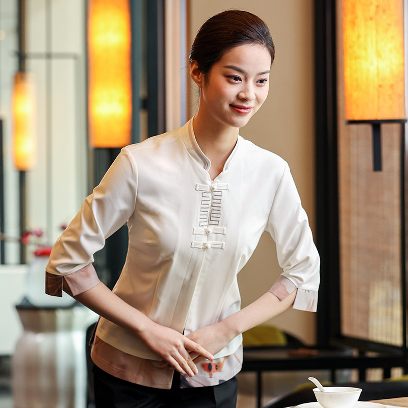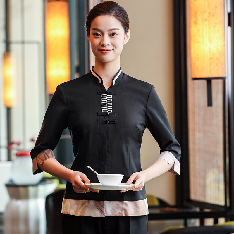 Post-Implication Catering Attendant Working Clothes Woman Short Sleeve Star Hotel Chinese Dining Room Hotel Banquet Hall Clothing Summer