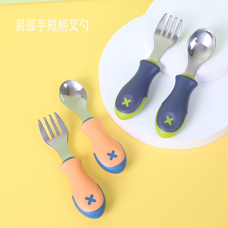 Baby Training Chopsticks Children Baby Boy Sub Food Soup Spoon Sub Short Handle Spoon Fork Stainless Steel Cutlery Set Special Fork