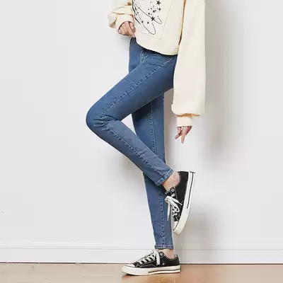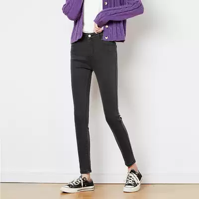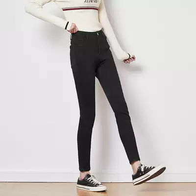 Tang lion 21 spring and autumn new high waist plus velvet jeans women thin stretch tight slim cigarette tube pants black pencil pants