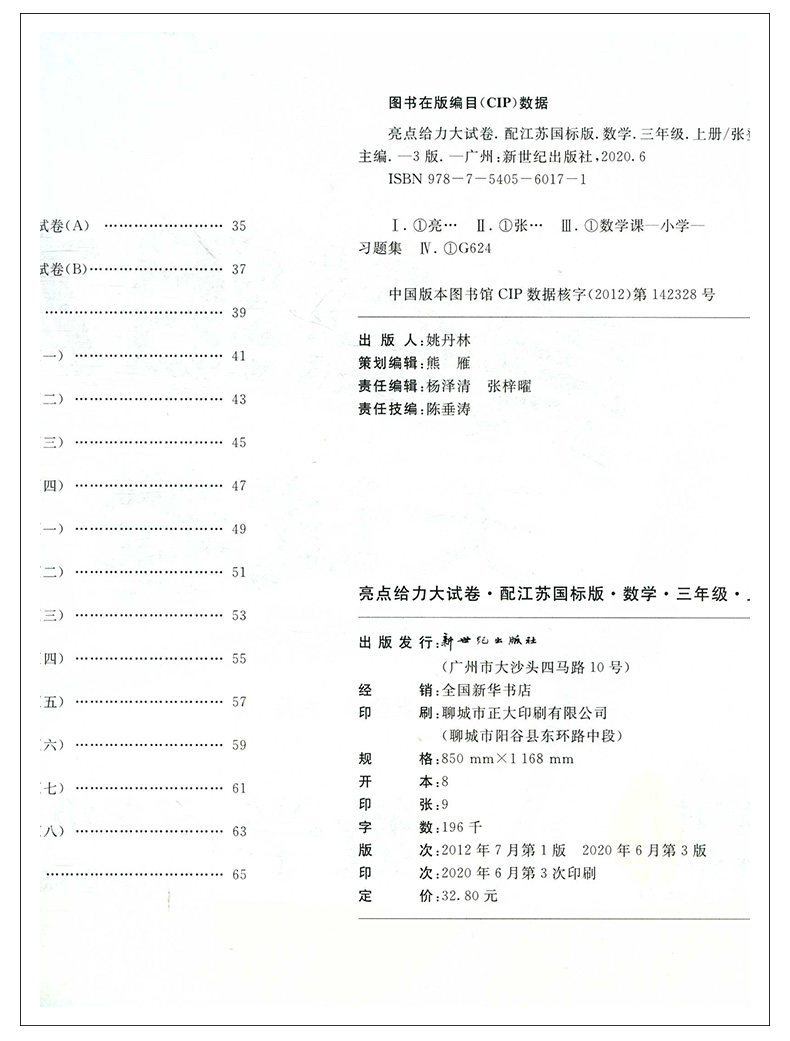 Genuine 2020 Autumn New Edition Highlights to the Powerbig Paper 3rd Year Book 3rd Year Book of Maths Jiangsu International Edition Primary School 3 Third Year Book of Mathematics Jiangsu Education Edition Zhangdenku Editor-in-Chief Supplementary Teaching Materials Unit Period Final Examination